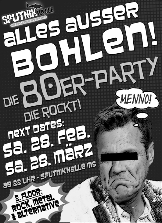 Wer keine Lust hat, den Jeckentag mit den üblichen Stimmungsliedern wie „Münster, Helau und Hurra“ oder Schlagermucke á la „Atemlos durch die Nacht“ zu feiern, der findet seit vielen Jahren in der Kultkneipe Heile Welt die ideale Alternative. Hier ist es nämlich Tradition, alle Jahre wieder am Rosenmontag ein „Konterprogramm“ mit knalligem Punk und Rock auf die Beine, bzw. Bühne zu stellen, um den bösen Geistern auch ohne Narrenkappe, Humtata und Tätärä den Garaus zu machen. Als musikalische Gäste werden Die Beschmierten, Dammriss, Fresse (Foto) sowie Old Sparkey für anarchische Stimmung sorgen. Der Eintritt ist frei, aber es werden „Hut-Spenden“ für die Bands erwartet. Ansonsten sollte man vor allem Kondition und eine gewisse Trinkfestigkeit mitbringen. Am besten früh kommen, da es schnell rappelvoll wird...