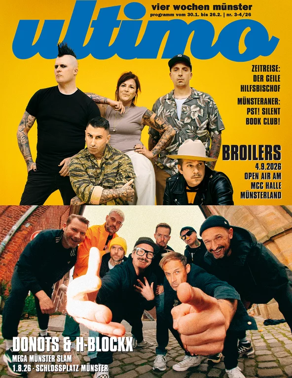 Im letzten Sommer noch frischgebackene Muffikaner - seit März jetzt Münster downtown: Die Ultimo-Redaktion ist schon wieder umgezogen! Aus der alten, verwinkelten Apotheke im Schatten der Herz-Jesu-Kirche (hat uns gut gefallen, der Kiez!) in eine ehemalige Zahnarztpraxis an der Aegidiistraße 32, Ecke Schützenstraße. Genau gegenüber vom Gasolin, vom Kanello an den Aasee! Da haben wir zwar kein großes Schaufenster zum Rumposen mehr, dafür aber auch keinen befristeten Mietvertrag, der nur von Jahr zu Jahr verlängert werden kann. Nur dieses verdammte Kistenschleppen, ächz, allein unser Archiv mit den gesammelten Ultimos seit 1972 (in Worten: Neunzehnhundertzweiundsiebzig), was für ein Geschleppe! Ansonsten: Super hier, und der Aasee zum Chillen gleich um die Ecke. Hey Chef, ist das Pinkus im Bürokühlschrank schon kalt? :)